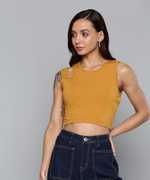 Mustrad Rib Shoulder Cut Out Crop Top, in Lycra Rib fabric, Unlined, Crop Length, Slim Fit, No Closure, Straight Hemline and features Cut Out At One Side Shoulder