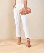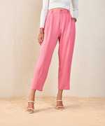 Beige Tapered Pants , in Canton Knit fabric, Pleats Detail At Front, , Knitted, Straight, Fabric: Canton Knit Hemline and features Pleats Detail At Front