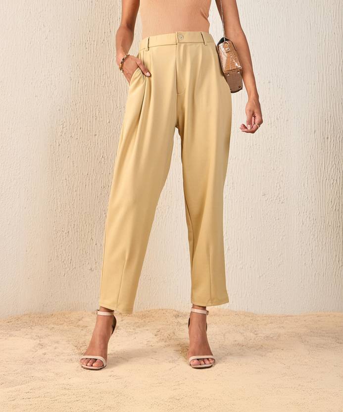 Women Comfort Fit Beige Polyester Trousers