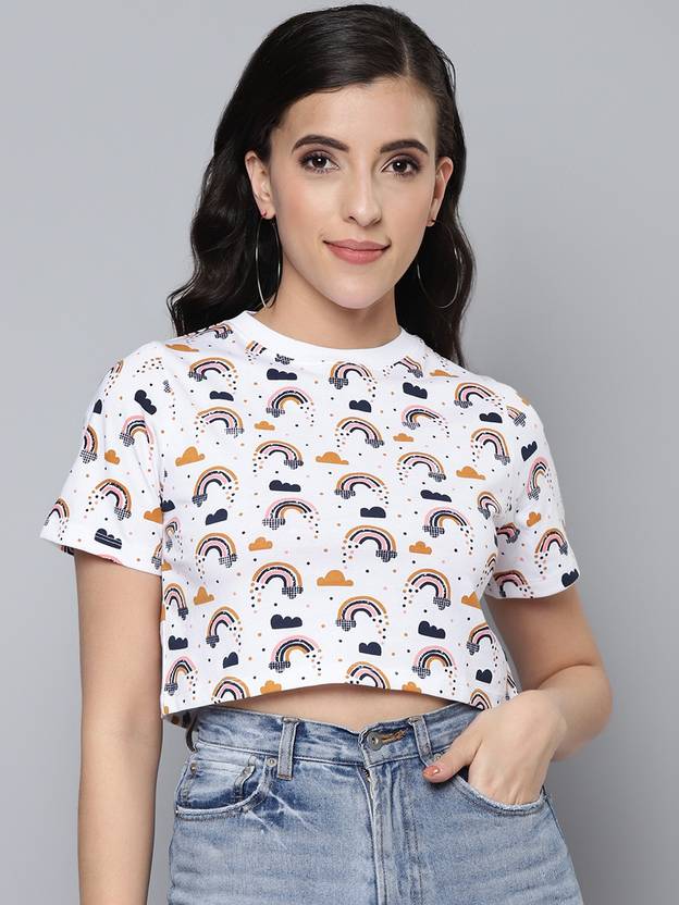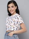 SASSAFRAS Printed Women Round Neck White T-Shirt