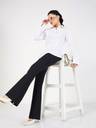Black Bone Pocket Bell Bottom Pants, in Roma fabric, Unlined, Full Length, Slim Fit, Slip On, Straight Hemline and features Fancy Button Detail At Front & Sleeves