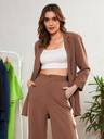 Brown Longline Front Open Blazer, in Karera Crepe fabric, Polycrepe, Regular Length, Regular Fit, No Closure, Straight Hemline and features Show Pocket Detail