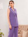 Lavender Double-Breast Sleeveless Longline Blazer, in Canton Knit fabric, Unlined, Regular Length, Regular Fit, Button Closure, Straight Hemline and features Metal Button Closure