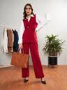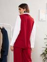 Red Double-Breast Sleeveless Longline Blazer, in Canton Knit fabric, Unlined, Regular Length, Regular Fit, Button Closure, Straight Hemline and features Metal Button Closure