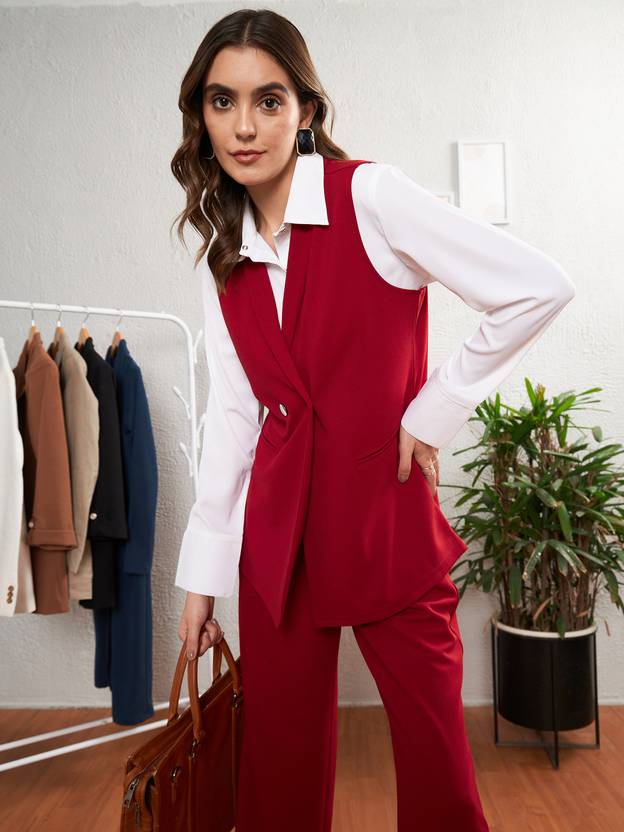 SASSAFRAS Women Solid Single Breasted Casual Blazer (Red)