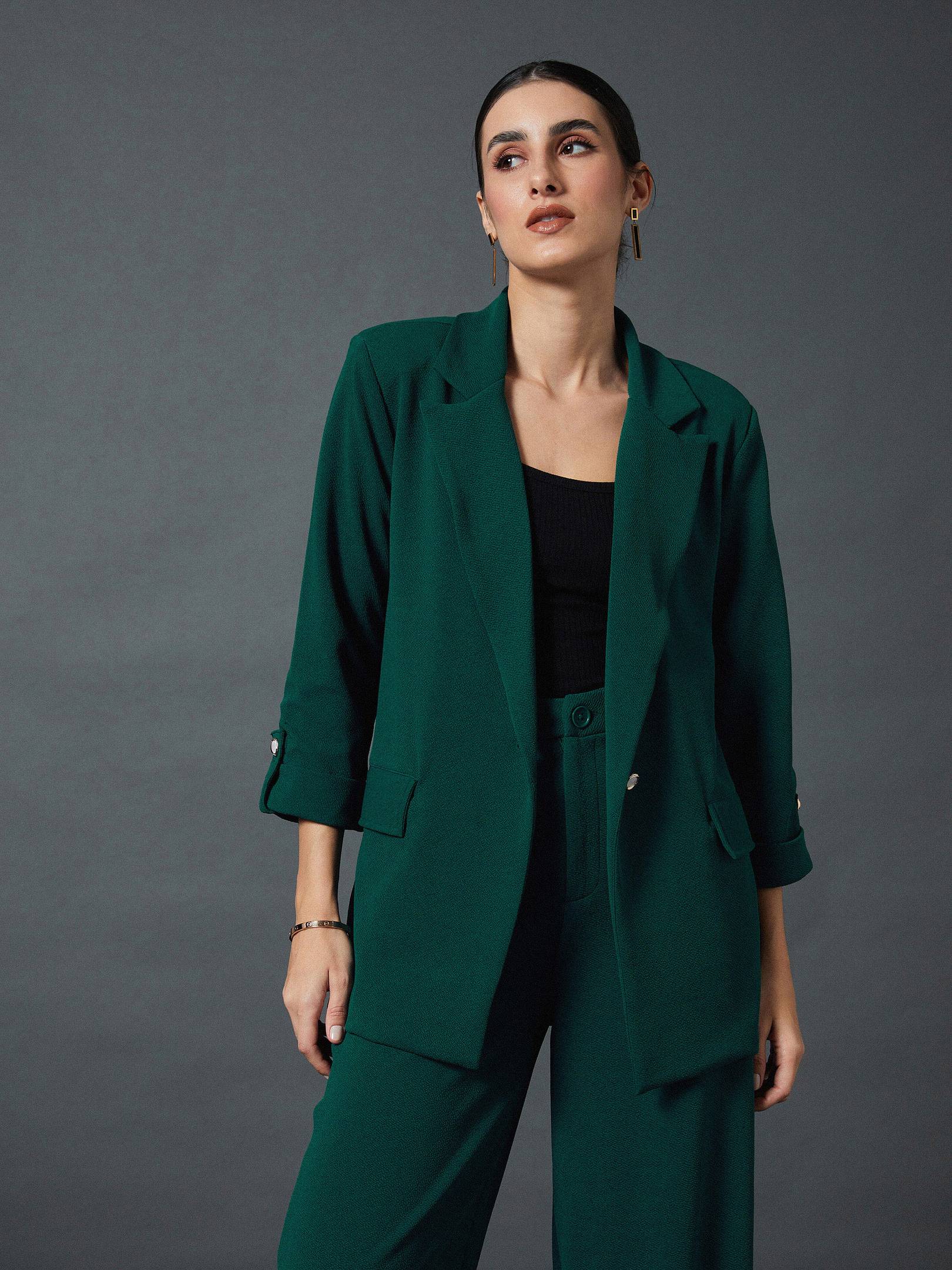 SASSAFRAS Solid Single Breasted Formal Women Blazer (Green)