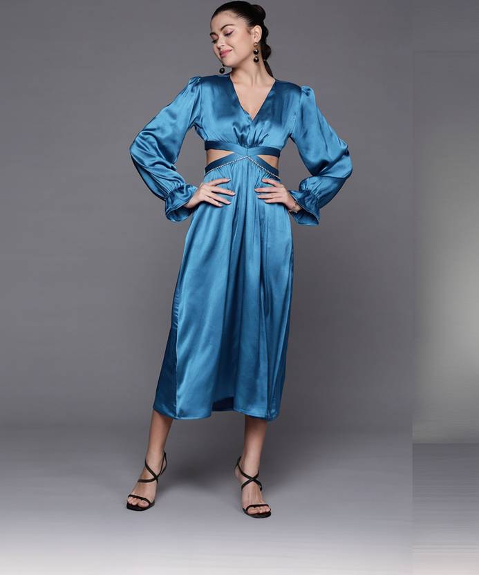 SASSAFRAS Women A-line Blue Midi/Calf Length Dress