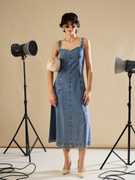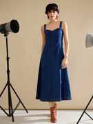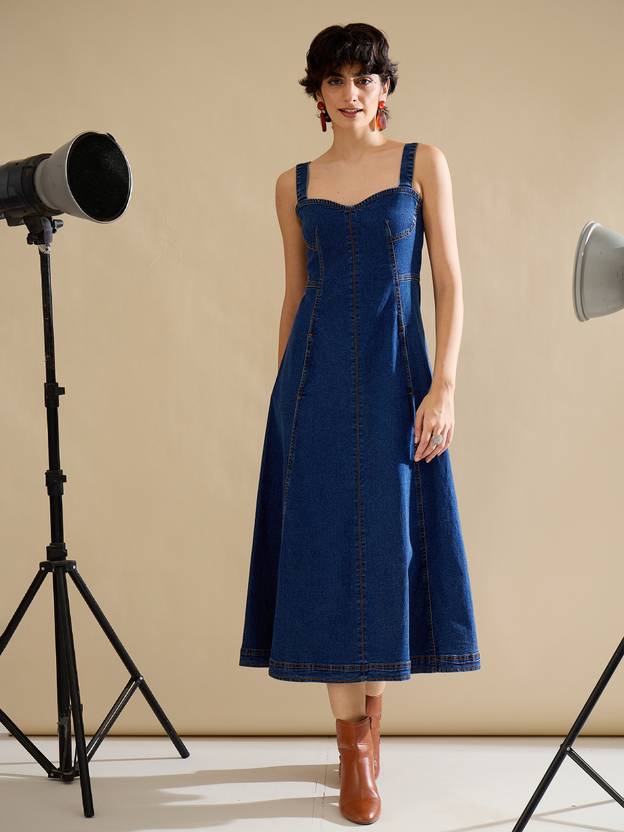 SASSAFRAS Women A-line Dark Blue Midi/Calf Length Dress