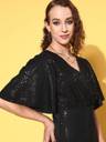 Black Sequin Wrap Front Midi Dress, in Sequin Georgette fabric, Polyknit, Below Knee, Slim Fit, Zipper Closure, Straight Hemline and features Wrap Front