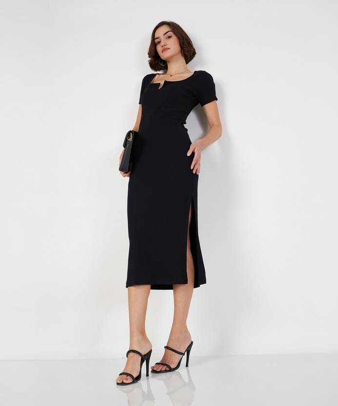 SASSAFRAS Women Bodycon Black Midi/Calf Length Dress