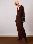 Maroon Acrylic Wool Collar Midi Dress, in Acrylic Wool fabric, Unlined, Maxi Length, Comfort Fit, No Closure, Straight Hemline and features Self Design
