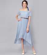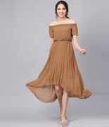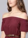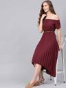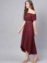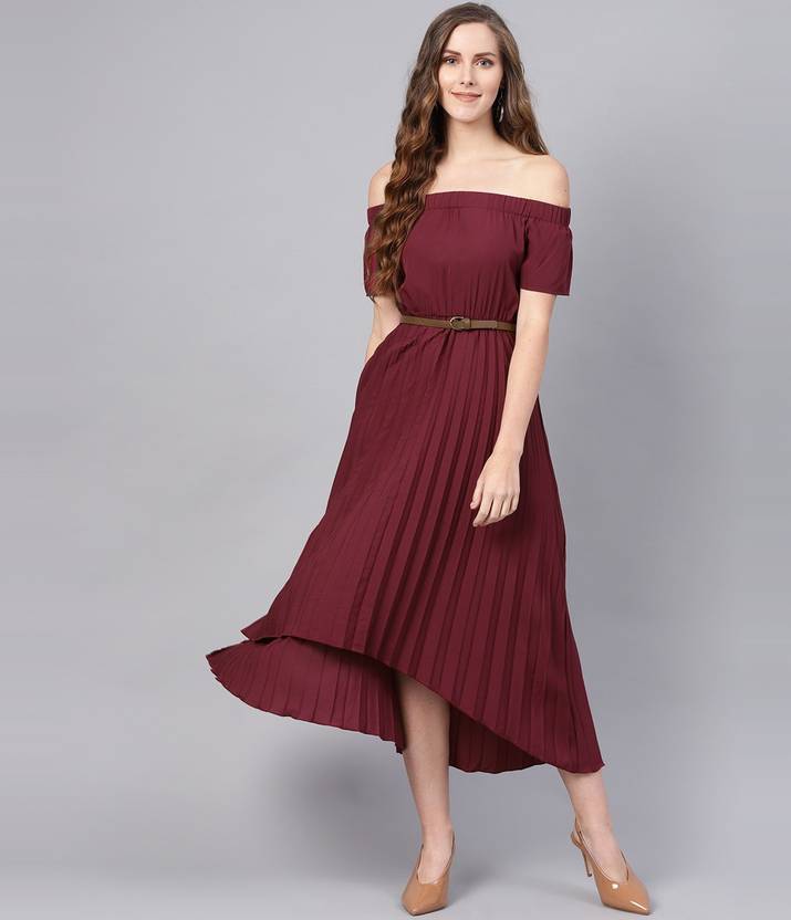 SASSAFRAS Women High Low Maroon Midi/Calf Length Dress