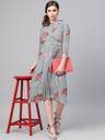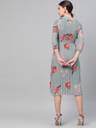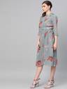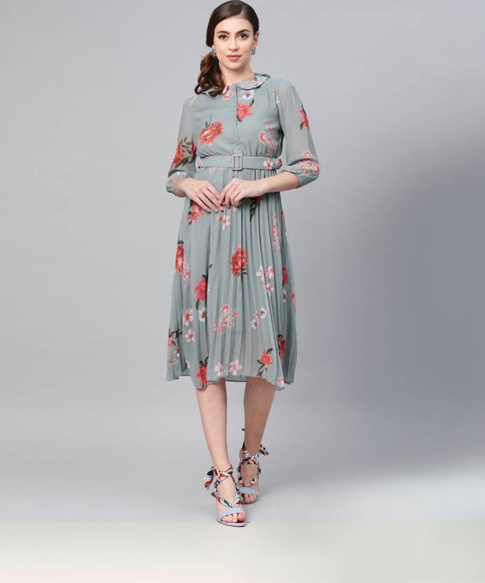 SASSAFRAS Women Pleated Red, Green, Blue Midi/Calf Length Dress
