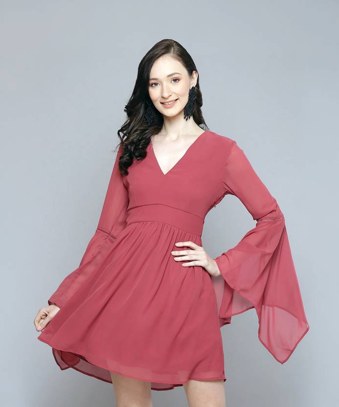 SASSAFRAS Women Skater Pink Knee Length Dress