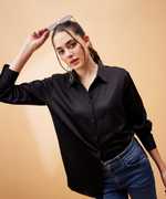 Women Regular Fit Solid Spread Collar Casual Shirt