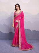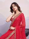 Elevate your ethnic wardrobe with this beautifully crafted Women's Georgette Bandhani Print Saree. Designed with traditional charm and modern elegance, this saree features vibrant Bandhani prints all over, enriched with a delicate lace border for a graceful finish. The lightweight georgette fabric ensures all-day comfort and effortless draping, making it perfect for festive occasions, family gatherings, or cultural celebrations. It comes with a matching unstitched blouse piece to complete your ethnic ensemble.