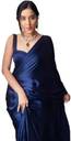 This navy blue ready to wear saree comes with ready pleats, a belt with hooks and doris. The belt also contains small elastics. This saree is comfortable for waist sizes ranging from 24 inches to 44 inches. The saree blouse is unstitched..