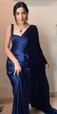 Saree Fabric : Navy blue Satin silk || Blouse Fabric : Navy blue Satin silk.