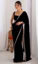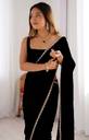 This ready to wear saree comes with ready pleats, a belt with hooks and doris. The belt also contains small elastics. This saree is comfortable for waist sizes ranging from 24 inches to 44 inches. The saree blouse is unstitched. The saree's bottom height (waist to floor) is up to 40 inches. Please do not order if you are very tall or need a saree bottom height greater than 40 inches. Saree Length : 5.5 meter || Blouse Length : 1 meter.... Ocassion - Party Wear || Daily Wear || Festive Wear || Office Wear || Evening Wear.. Product color may slightly vary due to photographic lighting sources on your monitor settings or device setting and lighting used in mode Saree Fabric : Georgette scalloped work lace || Blouse Fabric : Georgette..
