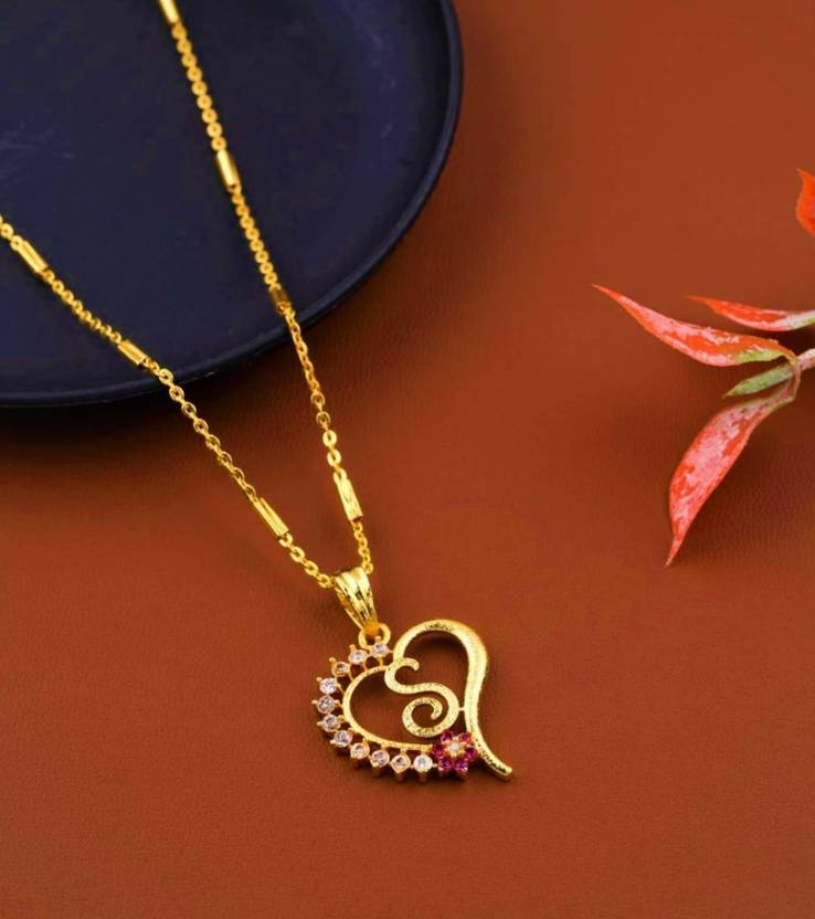 SATCREATION S Letter Diamond pendant chai For Women's Diamond, Ruby Gold-plated Plated Alloy Chain