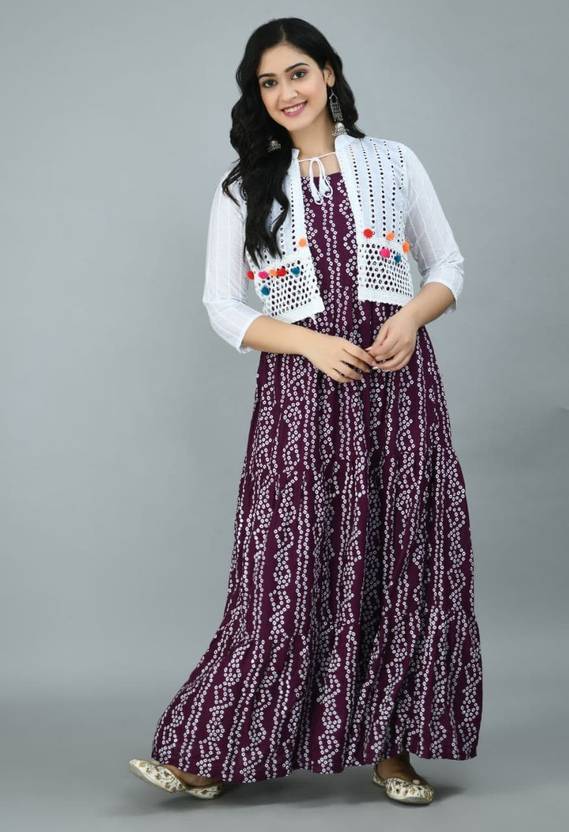 STG009 - Latest Designer Bandhani Printed Gown With Jacket For Ladies Flare Girls New Design Fancy Gown Long Straight Anarkali Flared Party Wear Traditional Printed Plain Work Simple Stylist Heavy Beautiful Style Net Chanderi Cotton Silk Poly Taffeta Tapeta Polka Dot Check Printed Georgette A-Line Satin Reyon Bollywood Deal Silk Cottan Tafeeta Solid Western Gowns Gown Knee Length Full Length Full Sleeve Flore Length Ankle Length Long Gown With Jacket Best Price Designer Online Best Shopping Also Available Kurti Top Sarees Gown Short Gown Indowestern Gorgeous fancy rayon kurta and jecet set Kurta Pajama Leather Jackets Sherwani Shirts T-Shirts Waistcoat Photo Frames Denim shirts Blazers Mirror Bags Jackets Blouse Designs Crop Tops Mysore Silk Saree Kids Lehenga Suit Design Lehenga Girls Dungarees Top for Girl Lingerie Gowns Saree Kids Ethnic Wear Sweaters Boys Games Barbie Doll Shoes For Men Cricket Shoes Lipstick Make Up Kit Fastrack Watches Casual Shoes Online Shopping Dresses Babydolls Eye Makeup Car Games