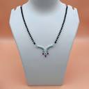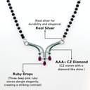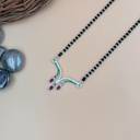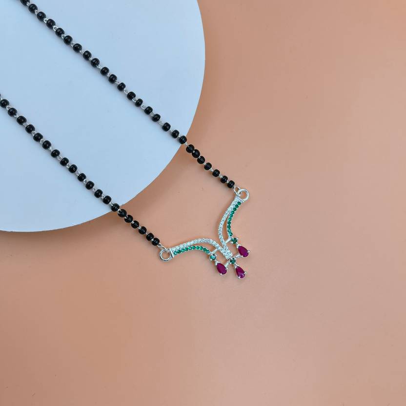 SATLAA Original silver Emerald and Crystal mangalsutra with black beads for girls Silver Mangalsutra
