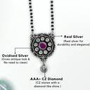 Discover the allure of our SATLAA Mangalsutras, expertly crafted from 925 Sterling Silver, designed to bring a touch of elegance and tradition to any outfit. These handmade creations, adorned with black beads, rhodium plating, and oxidized finishes, showcase a harmonious blend of cultural significance and contemporary chic. Whether you prefer a bold or subtle look, our collection features a variety of styles including long chains, pendants, and antique designs, in modern and vintage finishes to match your unique taste. Each piece is a tribute to skilled craftsmanship, making them ideal for adding a sophisticated touch to your daily wear or as a thoughtful gift for birthdays, anniversaries, weddings, and festive occasions like Diwali, Eid, and Christmas. They are a heartfelt token for girlfriends, wives, mothers, or any special woman in your life. Our mangalsutras are durable and comfortable for all-day wear, available in designs like the elegant nallapusalu, the trendy karimani, and the classic black bead chains. Shop with confidence online for these exquisite mangalsutras, each bearing the 925 hallmark to guarantee authenticity and quality. Whether you seek a simple, refined piece or a more ornate, embellished set, our collection caters to all preferences, making it perfect for modern fashionistas or anyone looking to infuse a touch of timeless beauty into their wardrobe. With their unique design, these mangalsutras are an essential addition to any jewelry collection, ensuring a stylish and everlasting appeal.