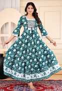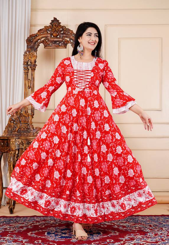 Floral Print Viscose Rayon Stitched Anarkali Gown (Red)