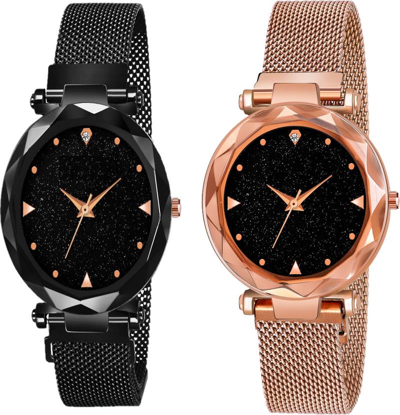 New Luxury Black Mesh & Rose Gold Mesh Magnet Buckle Starry sky Quartz Watches