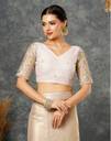 This saree from the house of Satrani is made from Shimmer Georgette and is Beige in color. Satrani Ethnic Sarees comes With Blouse Piece,Which can be Stitched according to Your Taste and Preference.This Saree is Crafted by Skill Craftsmen without Compromising on its Quality.With This Beautiful Design and Fabric, This Saree will fetch You Oodles of Compliments and Praise. saree fit size is 5.3m mtr saree & 0.8 mtr blouse, Free Size .