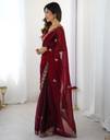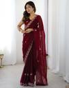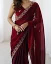 Explore the collection of beautifully designed sarees from Satrani Sarees. Saree Fabric : Tissue Silk & Blouse Fabric : Tissue Silk :: Saree Color : Maroon & Blouse Color : Maroon :: Saree Work :Sequins Embroidery, Scalloped Border & Blouse Work : Sequins Embroidery