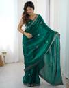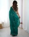 Explore the collection of beautifully designed sarees from Satrani Sarees. Saree Fabric : Tissue Silk & Blouse Fabric : Tissue Silk :: Saree Color : Teal Green & Blouse Color : Teal Green :: Saree Work :Sequins Embroidery, Scalloped Border & Blouse Work : Sequins Embroidery