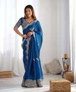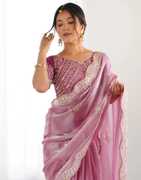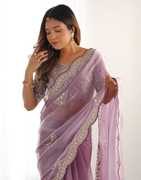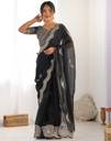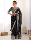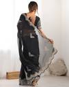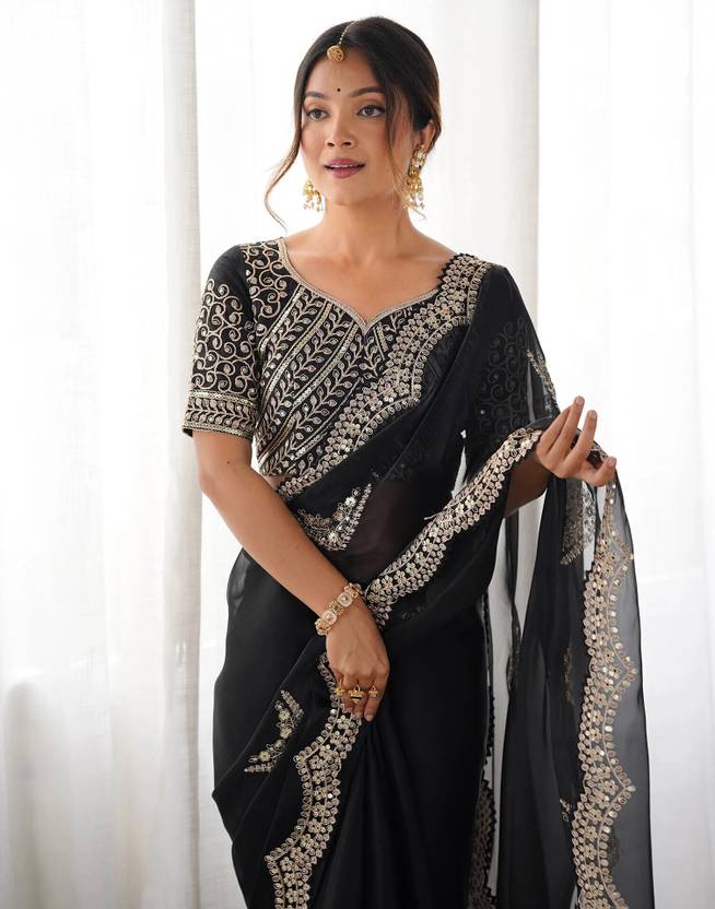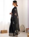 Organza Dyed & Sequin Embroidery Black Color Saree With Blouse