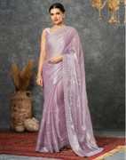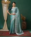 Tissue Silk Sequence Embroidery Sky Blue Color Saree With Blouse Piece