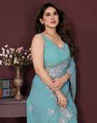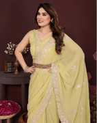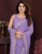 Explore the collection of beautifully designed sarees from Satrani Sarees. Saree Fabric : Georgette & Blouse Fabric : Georgette :: Saree Color : Lavender & Blouse Color : Lavender :: Saree Work :Sequins Embroidery, Scalloped Border & Blouse Work : Sequins Embroidery