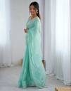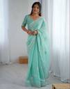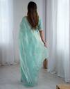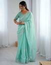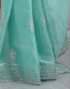 Tissue Sequin Embroidery & Scalloped Border Green Saree With Blouse