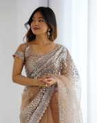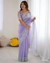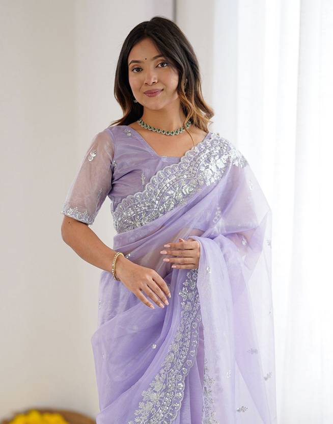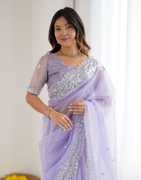 Explore the collection of beautifully designed sarees from Satrani Sarees. Saree Fabric : Net & Blouse Fabric : Net :: Saree Color : Lavender & Blouse Color : Lavender :: Saree Work :Sequins Embroidery, Scalloped Border & Blouse Work : Sequins Embroidery