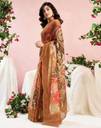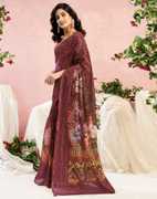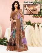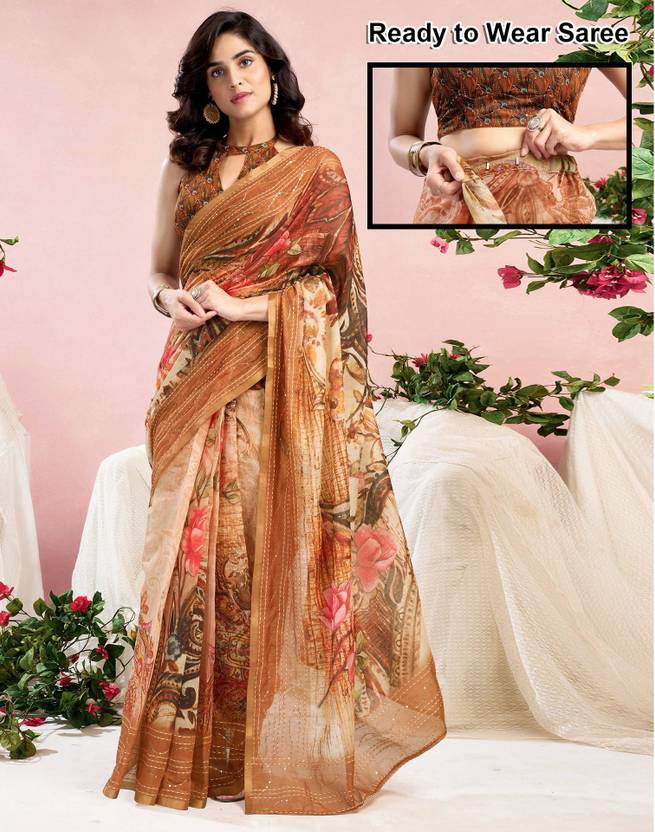Explore the collection of beautifully designed sarees from Satrani Sarees. Saree Fabric : Chanderi & Blouse Fabric : Chanderi :: Saree Color : Brown & Blouse Color : Dark Brown, Multi :: Saree Work :Floral Printed, Sequin Embroidery Work (Ready To Wear) & Blouse Work : Printed, Sequin Work