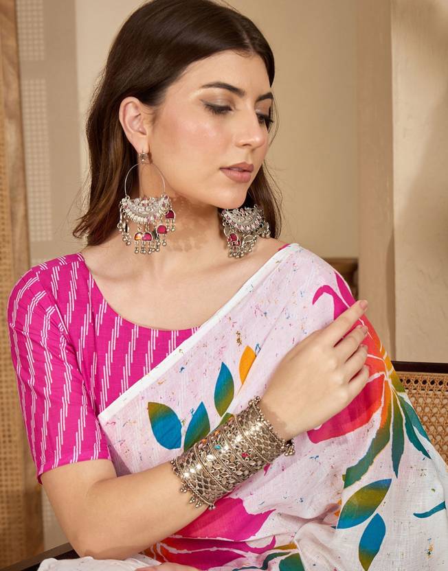 Explore the collection of beautifully designed sarees from Tasrika Sarees On Flipkart. Saree Fabric : Pure Cotton & Blouse Fabric : Pure Cotton :: Saree Color : White & Blouse Color : Pink, White :: Saree Work :Printed & Blouse Work : Printed