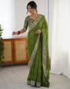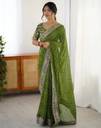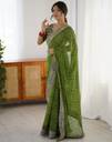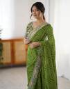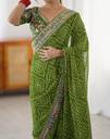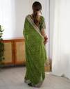Georgette Bandhani Printed, Sequin Embroidery Lace Mehandi Green Color Saree