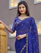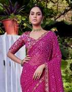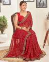 Georgette Bandhani ,Foil Print, Sequence Embroidery Dark Red Saree With Blouse