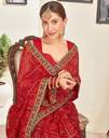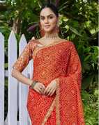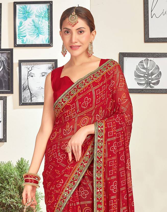 Discover A Stunning Assortment Of Beautifully Crafted Sarees At Satrani Sarees .Saree Fabric : Georgette & Blouse Fabric : Bhagalpuri Silk :: Saree Color : Dark Red & Blouse Color : Red :: Saree Work : Bandhani Printed,Foil Print, Sequence Embroidery Lace & Blouse Work : Dyed, Sequence Embroidery Lace :: Saree Length : 5.30Mtr & 0.80Mtr