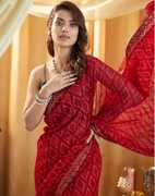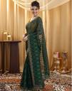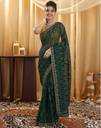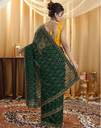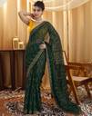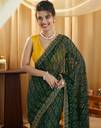 Georgette Bandhani Printed & Stone Work Dark Green Color Saree With Blouse