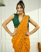 Discover A Stunning Assortment Of Beautifully Crafted Sarees At Satrani Sarees .Saree Fabric : Georgette & Blouse Fabric : Cotton Blend :: Saree Color : Dark Green & Blouse Color : Yellow, Golden :: Saree Work : Bandhani Printed, Stone Work, Self Woven & Blouse Work : Seaquence, Weaving :: Saree Length : 5.50 Mtr & Blouse Length 0.80 Mtr