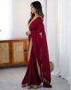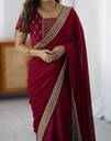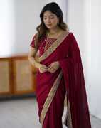 Explore the collection of beautifully designed sarees from Satrani Sarees. Saree Fabric : Chiffon & Blouse Fabric : Chiffon :: Saree Color : Cherry Red & Blouse Color : Cherry Red :: Saree Work :Sequin Embroidery Lace & Blouse Work : Sequin Embroidery Work