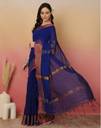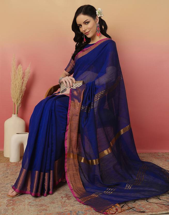 Explore the collection of beautifully designed sarees from Satrani. Saree Fabric : Cotton Silk & Blouse Fabric : Cotton Silk :: Saree Color : Dark Blue & Blouse Color : Dark Blue :: Saree Work :Woven Zari Stripe Border,Tassels & Blouse Work : Woven Zari Stripe Border