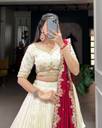 Color : White, Introducing our Women's Vichitra Fabric Chain Stitch Embroidered Work Lehenga Choli, Dupatta Lenght is 2.20 Meter. Lehenga Flair : 3 Mt, Lehenga Length is 42 Inch. Lehenga is Semi-Stitched which can be fitted up to 42 inch Waist Size. Choli (Blouse) is unstitched and can be altered according to your fit and style that you require. It has unstitched Choli with Embroidered Work. Dry Clean Or Normal Hand Wash. Product color may slightly vary due to photographic lighting sources or your monitor settings.