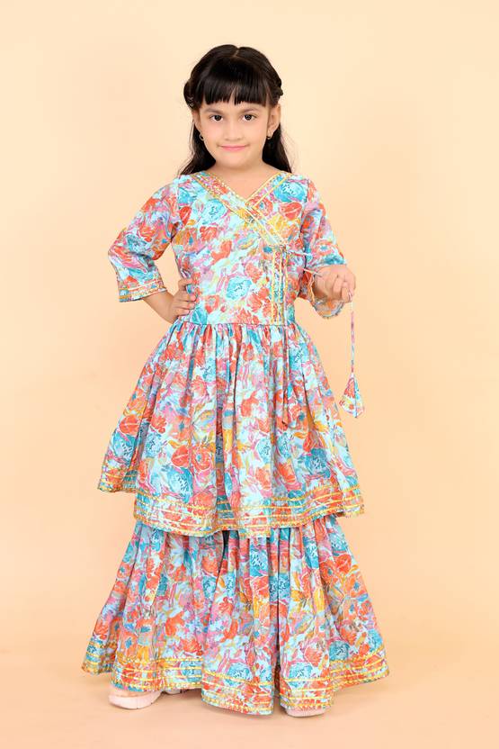 satyamfab Girls Festive & Party, Wedding Angarkha and Sharara Set (Blue Pack of 1)