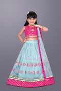 satyamfab Girls Lehenga Choli Ethnic Wear Self Design Lehenga, Choli and Dupatta Set (Blue, Pack of 1)