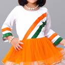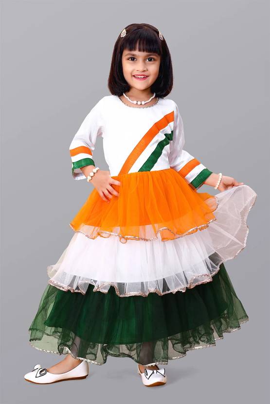 Add this Indian flag gown to your daughter's wardrobe at this independence day and make it special for your child.your princess feel proud by wearing it. An affordable three colours girl gown with 3/4 sleeve yoke, round-neck, waistband and this gown looks stylish and appealing. Made from soft net fabric, this dress is skin-friendly. This outfit is perfect for independence and republic day, and other special occasions like school event,national event Our dresses are comfortable and suitable for all seasons.